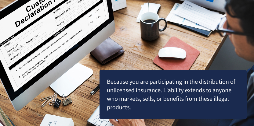 If you operate an online store, checkout platform, or app that promotes or profits from fake insurance, you can be held jointly liable — even if a third-party widget handles the transaction.